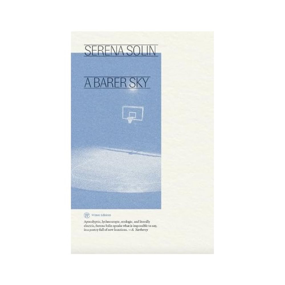 Serena Solin’s first book is a stellar accomplishment, a luminous elegy on loss that unfolds in inventive forms: There’s poetry of course, but also plays, essays, and anagrams. In conversation with poets and thinkers from Transcendentalism to the Language school, Solin reminds us of our collective grief as well as our collective strength. A Barer Sky proves that the complexity and heat of the tender heart pressed up against the cold cannot be extinguished. —BRENDA COULTAS