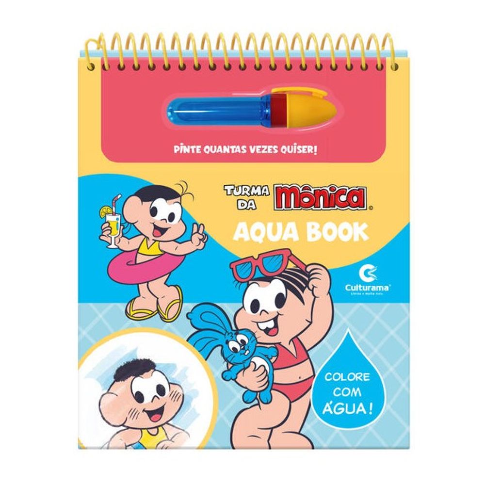 Com o Aqua Book Turma da Mônica, é só encher o pincel, passar nas páginas e ver os personagens aparecerem como mágica. Depois de seco, pode usar de novo.