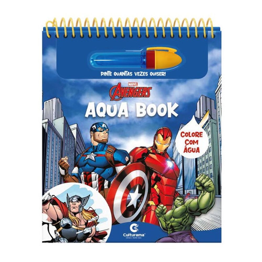 Com o Aqua Book Vingadores Premium, a diversão é garantida! Pegue seu pincel, encha com água e pinte as páginas para revelar o Capitão América, Thor, Hulk, Homem de Ferro e outros heróis em cenas cheias de ação. E o melhor: deixe secar e pinte de novo quantas vezes quiser! ?