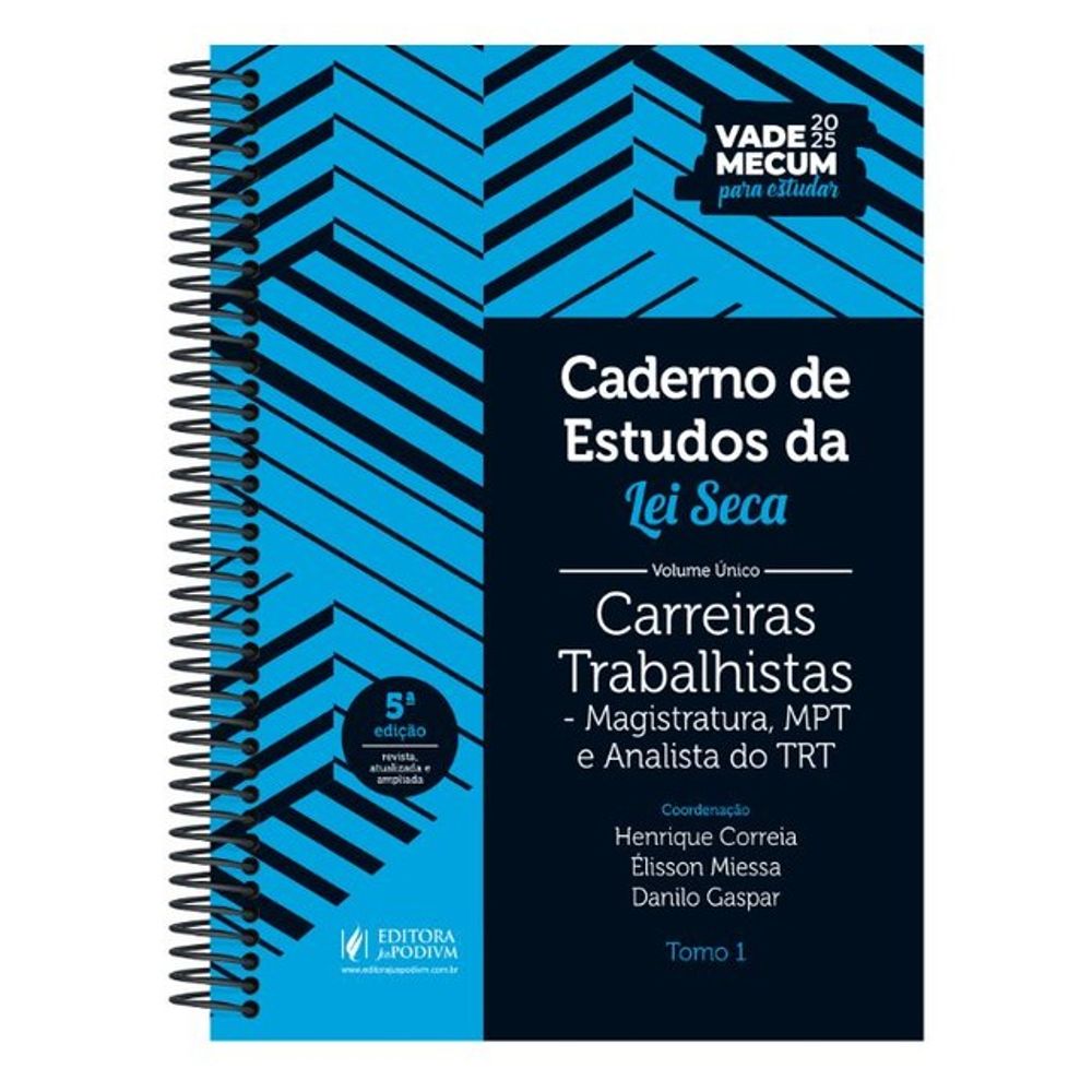 A Editora Juspodivm tem o prazer de lançar mais um produto para potencializar sua preparação: o Caderno de Estudo da Lei Seca Complementar Carreiras Trabalhistas - Magistratura, MPT e Analista do TRT.