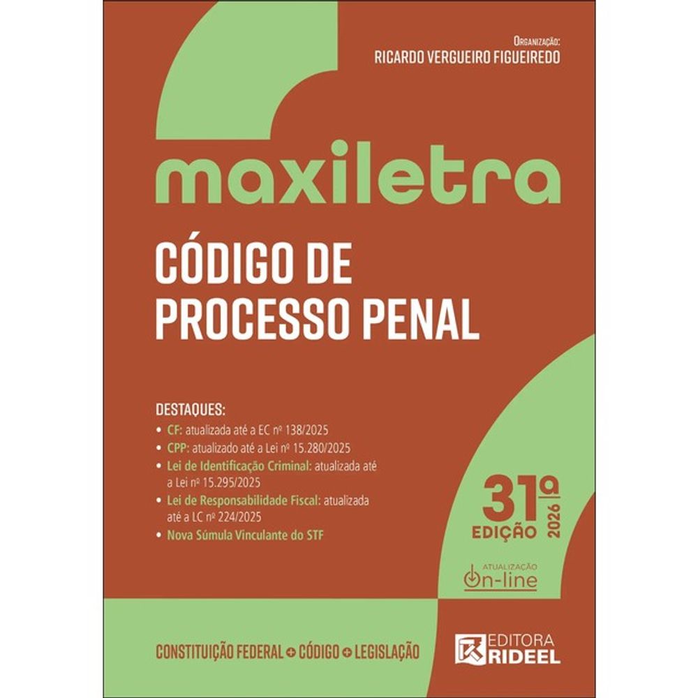 A Editora Rideel, atendendo à necessidade de estudantes e profissionais da área jurídica por obras com letras maiores, que permitam uma leitura agradável no texto legislativo plenamente atualizado, criou a Coleção de Legislação Maxiletra 2026.