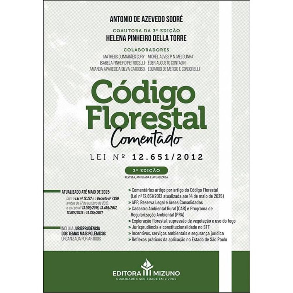 A obra apresenta os principais institutos do Código, como Áreas de Preservação Permanente, Reserva Legal, Cadastro Ambiental Rural, Programa de Regularização Ambiental, uso do fogo e controle de incêndios, exploração florestal e incentivos econômicos. Inclui ainda jurisprudência, análise crítica das medidas provisórias e decretos, reflexos práticos da implementação e comparações internacionais.