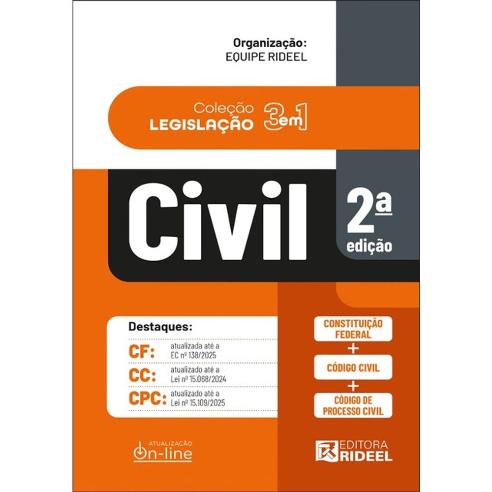 A Editora Rideel, empresa nacionalmente reconhecida por sua destacada atuação e pioneirismo na área de publicação de legislação, com o intuito de atender todas as necessidades dos leitores e atenta às suas demandas, apresenta a Coleção – Legislação 3 em 1.