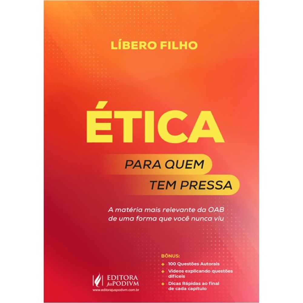 “Ética pra quem tem pressa” é uma obra que mudará sua forma de estudar Ética para a prova da OAB. Líbero nasceu com o dom de descomplicar qualquer conteúdo e fazer as informações grudarem na sua cabeça.