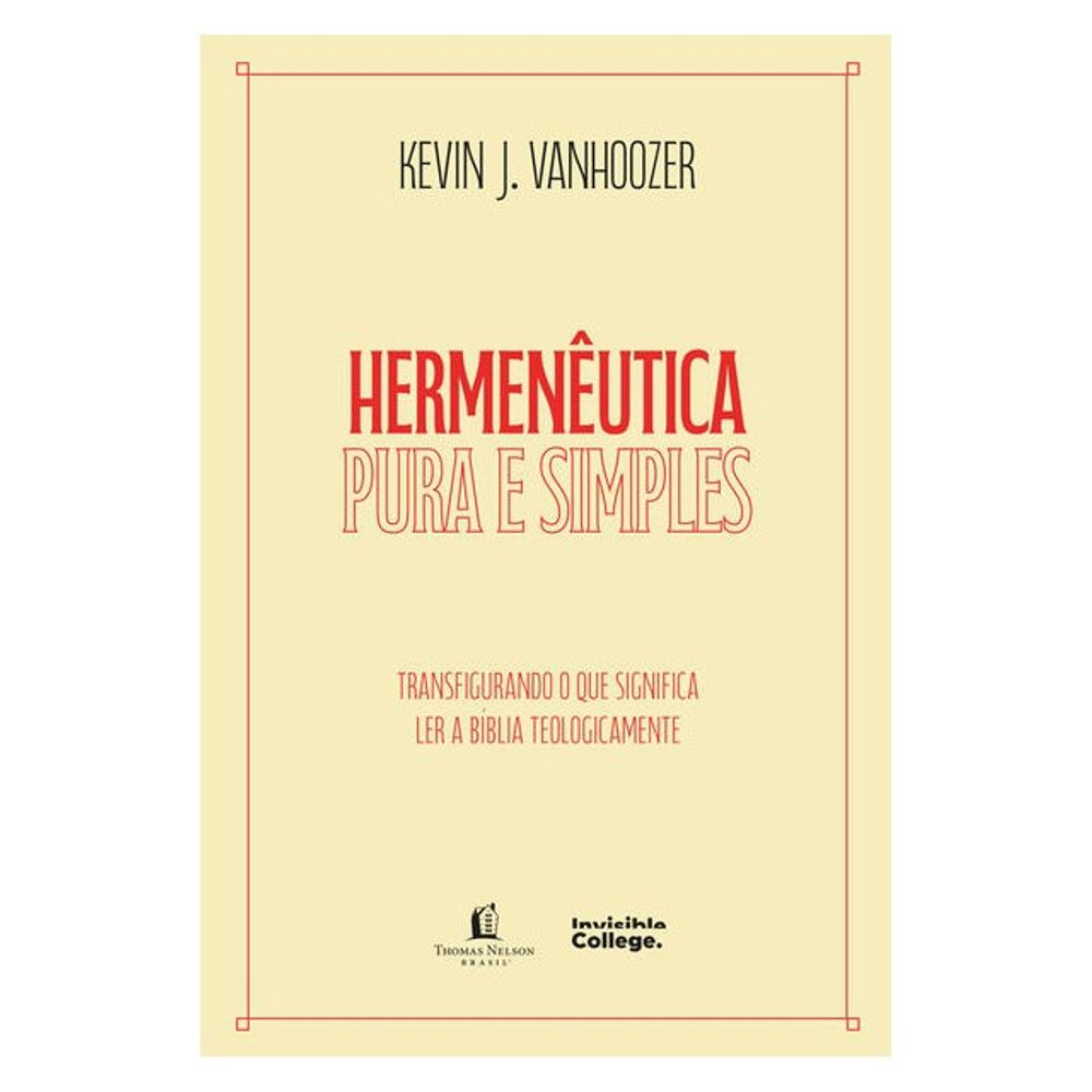 Em resposta, Vanhoozer apresenta uma hermenêutica cristã “pura e simples”: uma abordagem teológica que lê as Escrituras com e para o povo de Deus – de ontem e de hoje, do Oriente e do Ocidente, do Norte e do Sul. Para fundamentar essa proposta, o autor recorre aos relatos da transfiguração de Jesus, um momento-chave na economia da revelação divina, sugerindo que a interpretação espiritual ou “figural” não nega nem distorce o sentido literal das Escrituras, mas o glorifica.