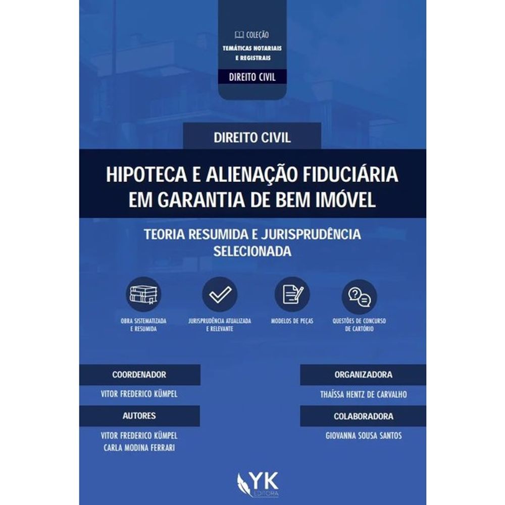 O livro apresenta uma abordagem clara, sistemática e objetiva dos institutos da hipoteca e da alienação fiduciária em garantia de bem imóvel, temas centrais do Direito das Coisas e do Direito Registral. A obra foi estruturada para permitir tanto o estudo teórico quanto a consulta prática, reunindo conteúdo relevante para a atuação em cartórios e para a preparação estratégica ao concurso de cartório.