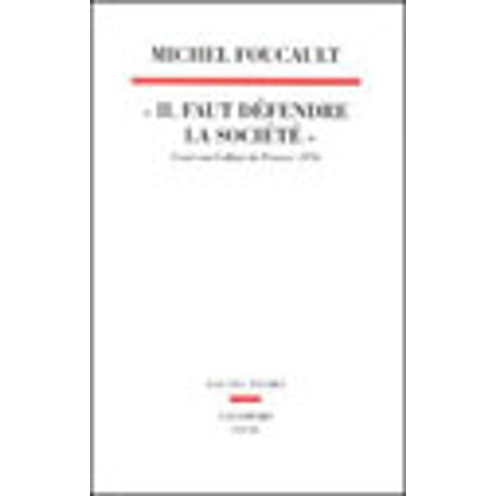 Dans le cours de 1976, " Il faut défendre la société ", Michel Foucault s'interroge sur la pertinence du modèle de la guerre pour analyser les relations de pouvoir. Michel Foucault en définit deux formes : le pouvoir disciplinaire, qui s'applique sur le corps par le moyen des techniques de surveillance et des institutions punitives, et ce qu'il appellera désormais le " bio-pouvoir ", qui s'exerce sur la population, la vie et les vivants. Analysant les discours sur la guerre des races et les récits de conquête (notamment chez Boulainvilliers), Michel Foucault dresse la généalogie du bio-pouvoir et des racismes d'Etat. La logique des rapports entre pouvoir et résistance n'est pas celle du droit mais celle de la lutte : elle n'est pas de l'ordre de la loi mais de celui de la stratégie. La question est dès lors de savoir s'il convient de renverser l'aphorisme de Clausewitz et de poser que la politique est la continuation de la guerre par d'autres moyens. Le cours présenté ici a été prononcé de janvier à mars 1976 au Collège de France, c'est-à-dire entre la sortie de Surveiller et Punir et celle de La Volonté de savoir. Il inaugure la publication des cours de Foucault au Collège de France, établie sous la direction de François Ewald et d'Alessandro Fontana, dans la collection " Hautes Etudes ".