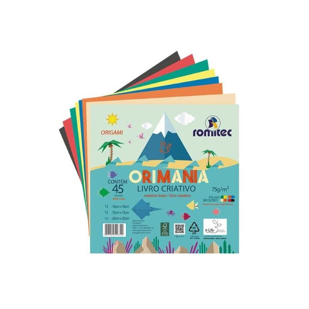 Descrição complementar - O Livro Criativo Orimania ROMITEC, é um livro pedagógico com atividades de origami e dobradura, pode ser usado em atividades escolares e como entretenimento. Além do livro, o produto acompanha 45 folhas, nos tamanhos certos para a brincadeira! São 15 fls, no tamanho 10cm x 10cm, 15 fls no tamanho 15cm x 15cm, 15fls no tamanho 20cm x 20cm. Produto 100% reciclável.