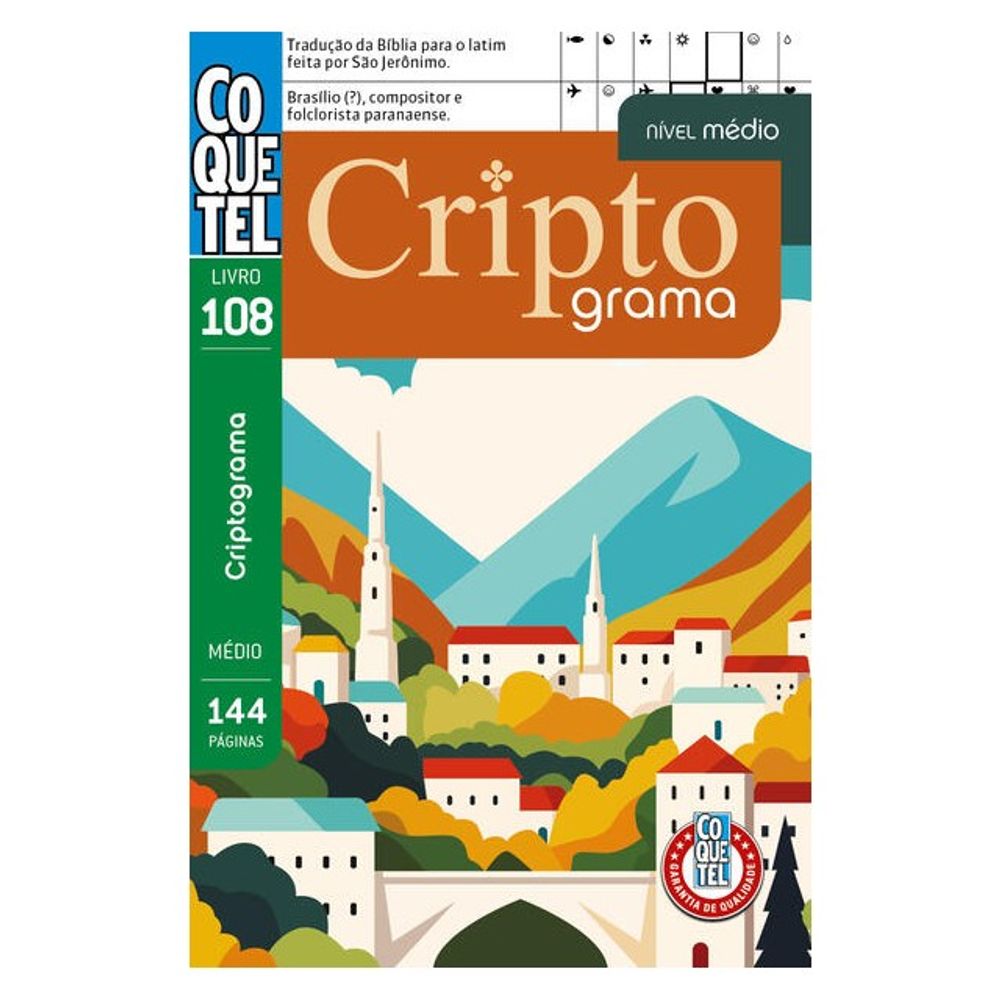 Com 144 páginas repletas de desafios inteligentes, o Livro Coquetel Criptograma – Nível Médio é perfeito para quem quer manter a mente ativa de forma divertida. Além dos tradicionais criptogramas com substituição de letras por números, o livro traz versões com temas variados e casas em destaque que revelam nomes, expressões e curiosidades ao serem decifradas.
