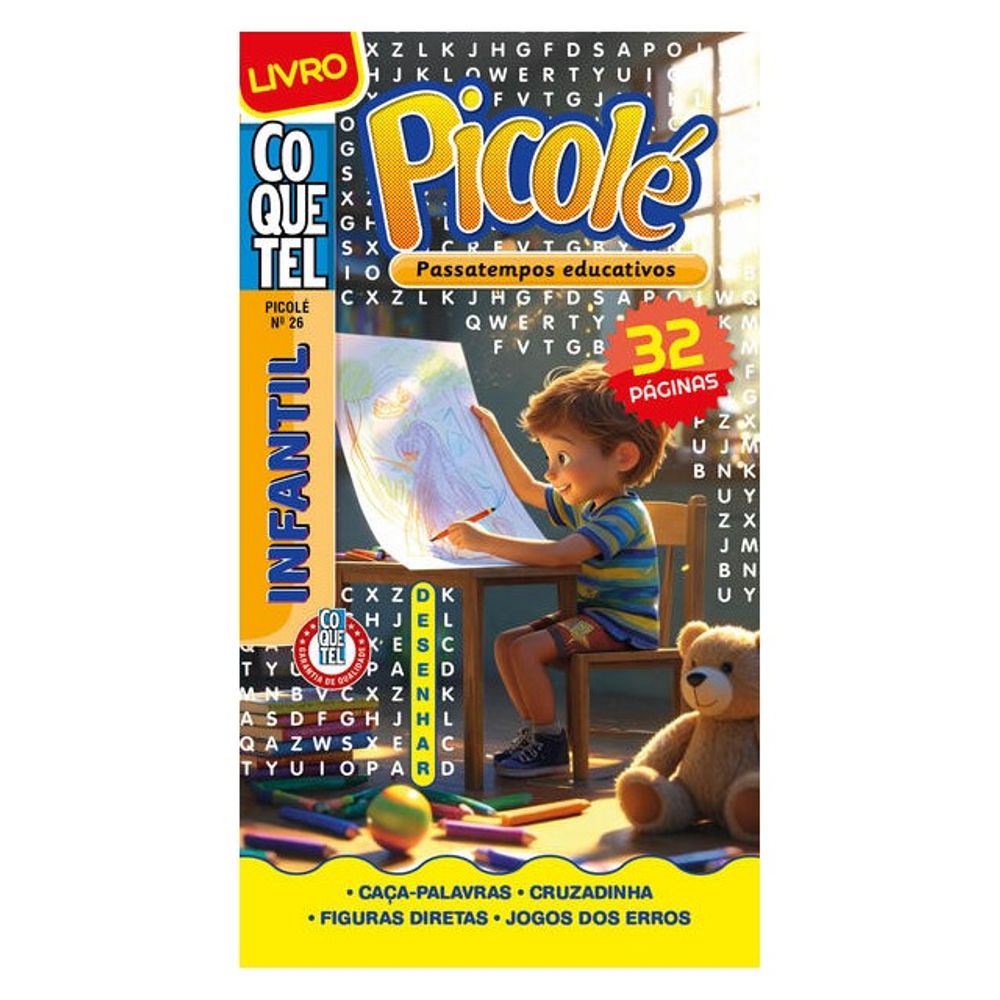 traz 32 páginas completamente coloridas e repletas de caça-palavras, cruzadinhas, figuras diretas e jogos dos erros, pensados para crianças de 6 a 9 anos:
