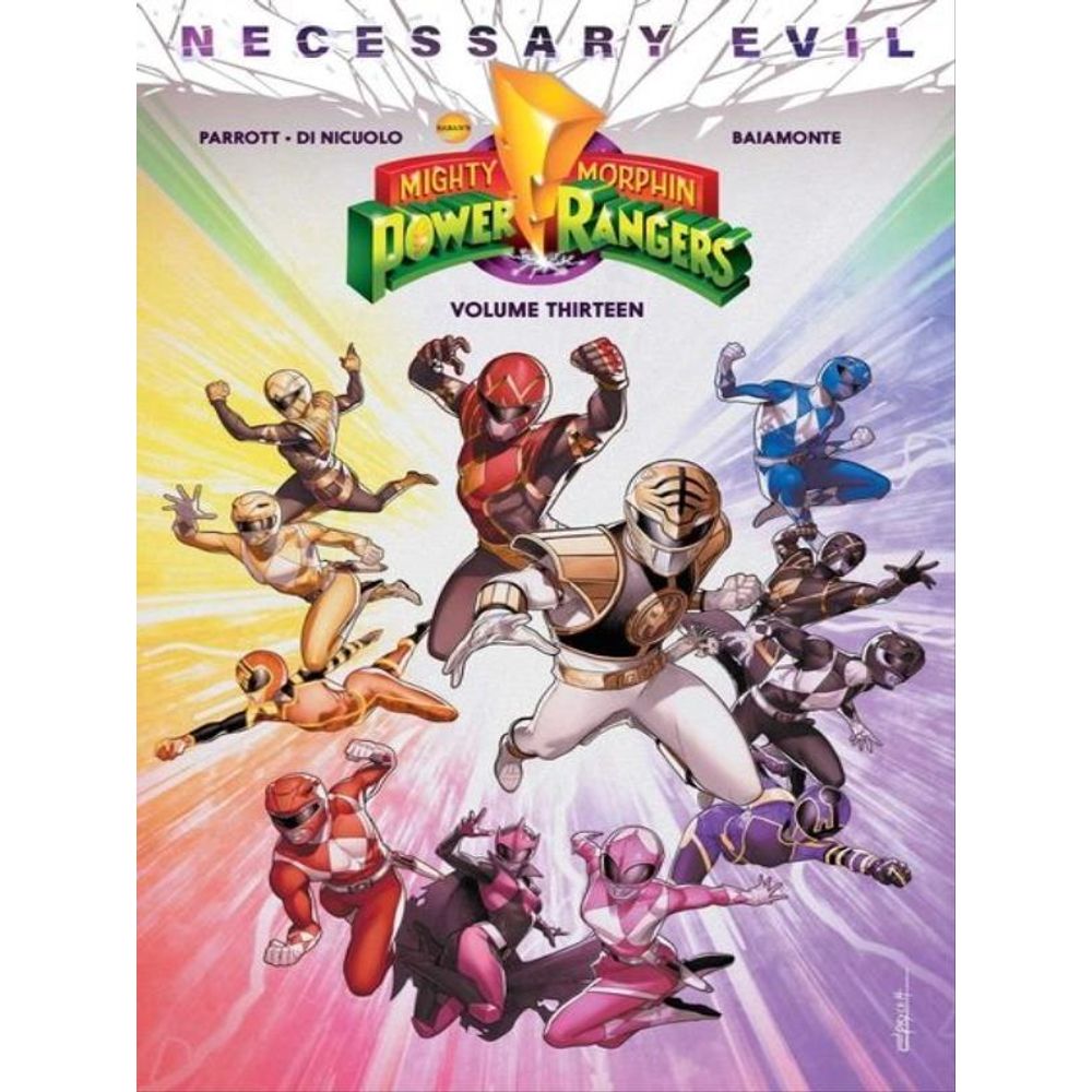 NO RANGER IS SAFE. The Mighty Morphin Power Rangers and the all-new Omega Rangers have joined forces, but even the shocking return of The Ranger Slayer may not be enough to defeat Dayne, Kiya and the full power of the Anointed! It's final fight for the fate of the Power Rangers as friends new and old join forces against their greatest enemy yet! New York Times bestselling author Ryan Parrott and artist Daniele Di Nicuolo conclude the epic Power Rangers: Necessary Evil event with a final page shocker no Power Rangers fan can afford to miss. Collects Mighty Morphin Power Rangers #48-50.