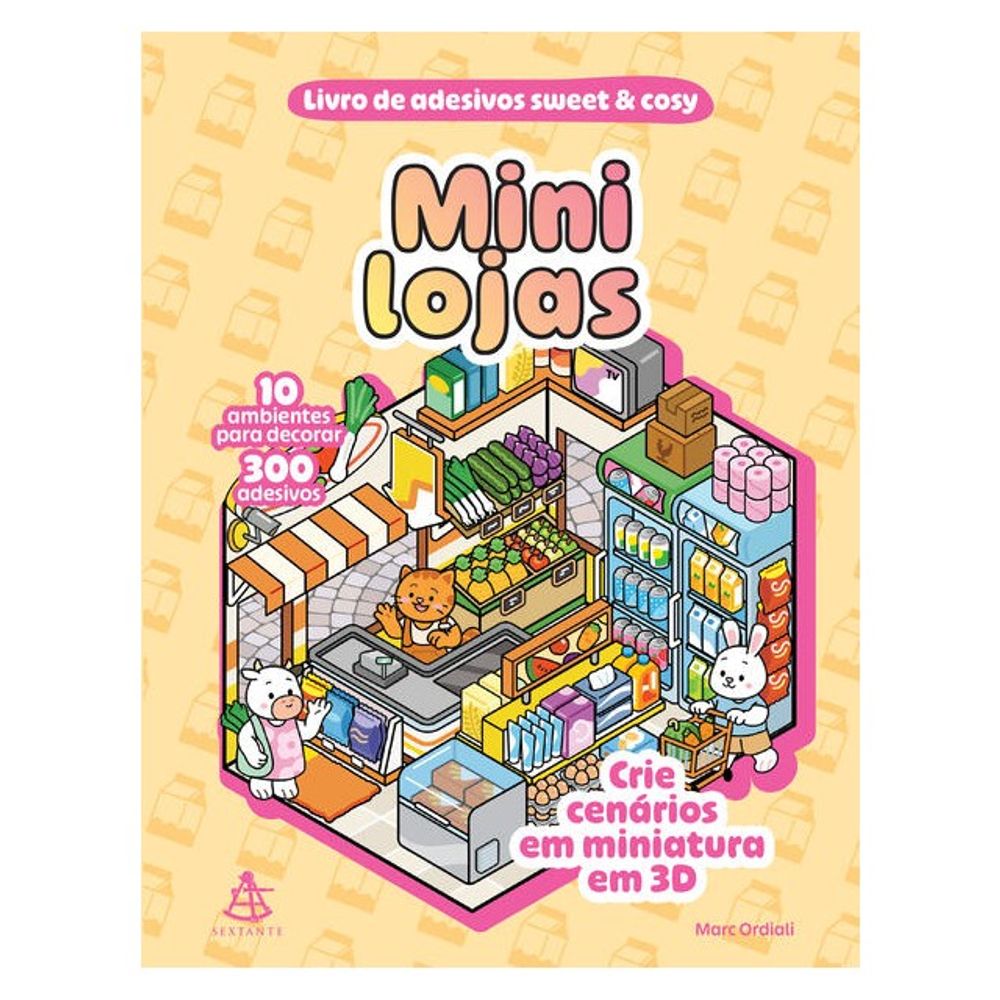 Ilustrado por Marc Ordiali, este livro convida você a usar miniadesivos para montar 10 lojinhas completas, desde uma minilivraria, uma miniqueijaria até uma miniconfeitaria fofíssima. Todas as lojinhas são repletas de detalhes e bichinhos adoráveis. Se você ama papelaria kawaii, design de interiores e momentos criativos relaxantes, este é o refúgio offline perfeito.