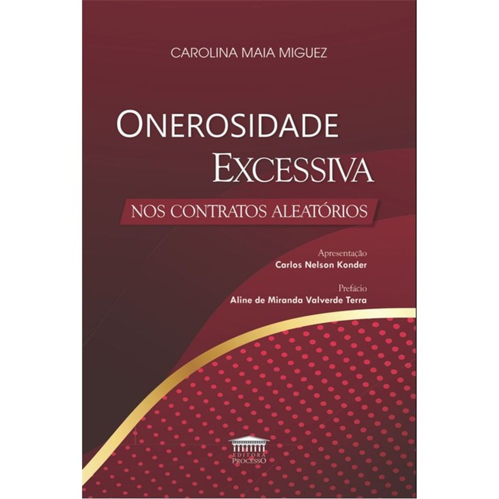 Em síntese, a obra de Carolina Maia Miguez trata, com grande clareza e organização, de tema de enorme relevância prática. Condizente com a trajetória acadêmica da autora - que tenho a satisfação de acompanhar desde a graduação -, o trabalho demonstra a dedicação de uma jovem pesquisadora ao tratar com enorme seriedade do direito contratual. Acima de tudo, traz subsídios efetivos para os operadores do direito que, premidos pelas urgências da vida contenciosa, buscam soluções idôneas a abordar a infinita riqueza da realidade concreta por meio de reflexões teóricas palatáveis e coerentes. Nesse mister, 'Onerosidade excessiva nos contratos aleatórios' é obra particularmente bem-sucedida."