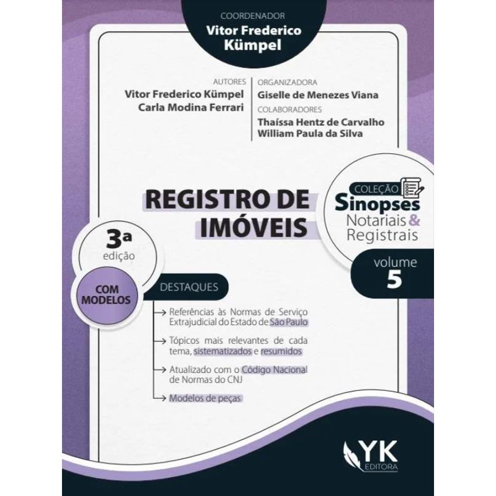 Organizada de forma intuitiva, com design de agradável leitura e linguagem clara e objetiva, a Coleção Sinopses surge como importante aliada nos estudos para Concursos de Cartório, além de ser ideal para leitores que buscam um primeiro contato com a matéria, e até mesmo para profissionais da área que desejam se atualizar com as mais recentes novidades legislativas e normativas.