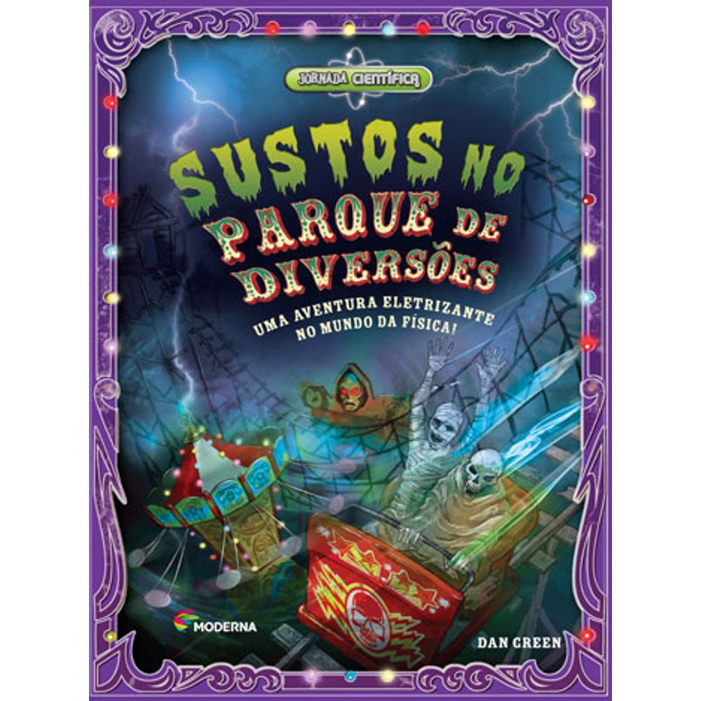 Os livros da coleção Jornada Científica são feitos para estimular os jovens a desenvolver habilidades em Ciências, Tecnologia, Engenharia e Matemática. Eles aprenderão como aplicar o conhecimento científico por meio de aventuras literárias. Em cada história, o leitor deve responder uma série de perguntas e quebra-cabeças científicos para progredir e chegar ao fim. Os livros não seguem a ordem direta das páginas. O leitor pula e volta páginas de acordo com a resposta que dá aos problemas. Se a resposta for correta, ele irá para a próxima fase da história; se errar, deverá ser redirecionado para o problema e, então, escolher a resposta correta. O glossário ao final de cada livro ajuda a entender conceitos de forma clara e fácil. Sustos no parque de diversões convida o leitor a usar seu conhecimento científico para ajudar o Sr. Fellini, dono de um parque de diversões, a se livrar dos monstros que estão a solta, causando o caos. O livro traz conceitos de forças, eletricidade, materiais, luz etc. É uma aventura eletrizante no mundo da física! Outros livros da coleção Jornada Científica: - Perdidos no espaço - Aventuras na Amazônia - A fórmula secreta.
