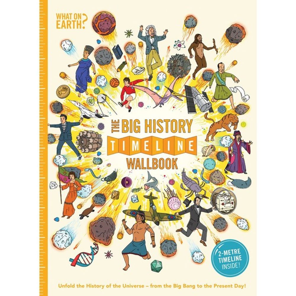 Explore the world from the beginning of time until the present, in this amazing, over-sized timeline book that brings history to life! The timeline is uniquely broken out into 12 sections, including by subject areas (such as sea, land) and continents, as well as by date, with over 1,000 pictures and captions. From the rise of the dinosaur to the creation of the smart phone, the nearly 2-metre timeline allows you to compare events across the world at any given moment in time. An easy-to-read chronicle, written in the form of newspaper articles, highlights key moments from history, such as the rise and fall of Rome and the invention of the steam engine. Other features include a page of letters to the editor, a fifty-question quiz, and a pocket magnifier to make it easier to explore all the timeline's details. Perfect for 6-14 year olds, and history buffs of any age!