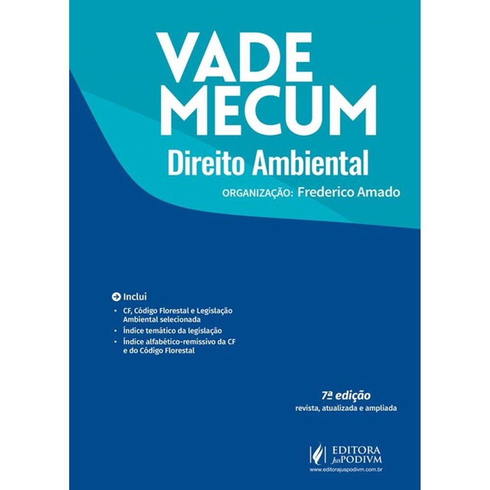 Em parceria com a Editora Juspodivm, concretizamos essa ideia ao publicar o Vade Mecum de Direito Ambiental, produto extremamente abrangente e que apresenta ao leitor normas do meio ambiental natural, cultural, artificial e laboral.