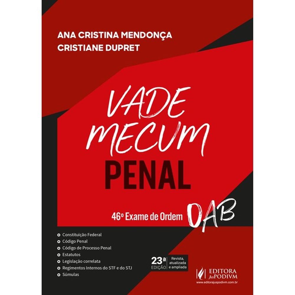 O VADE MECUM PENAL tem a melhor seleção de normas que você precisa para a sua prova porque está atualizado até o edital do 46º Exame de Ordem Unificado - OAB.